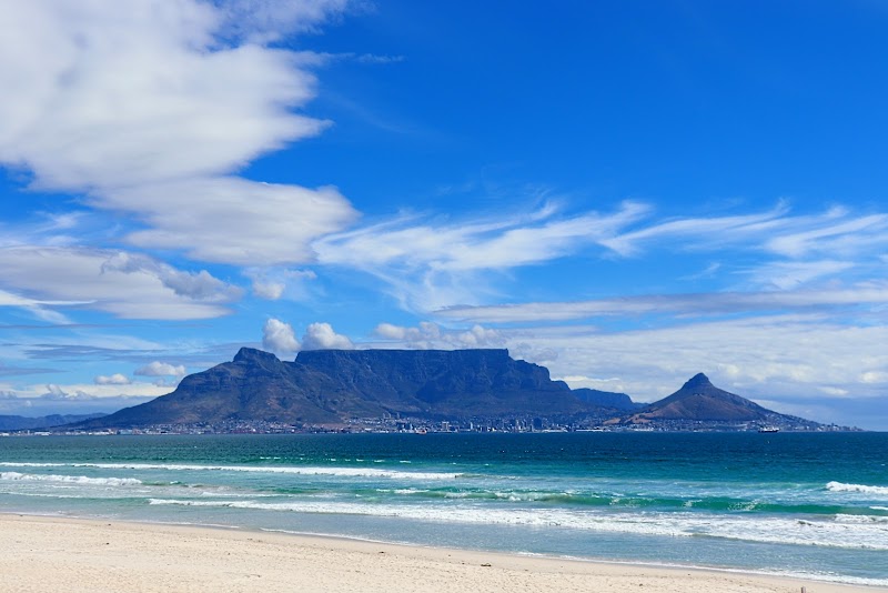 Blouberg Beachfront offers Cape Town's most iconic Table Mountain panorama, framed by open ocean. The wide sandy stretch runs for kilometres along the Atlantic coast. Cold, clean waves roll in consistently, making it a favourite spot for kiteboarders and surfers. You arrive to salt air, soft sand underfoot, and that postcard view most visitors chase for weeks. The beach suits early morning runners and golden-hour photographers equally well. Several casual restaurants and cafes line the road directly behind the beach. Grab a coffee and watch the kites launch at dawn. Families spread out on the northern end, while the southern stretch draws a more active crowd. Blouberg works any day the wind cooperates, which in Cape Town is most days.