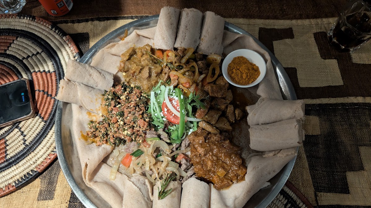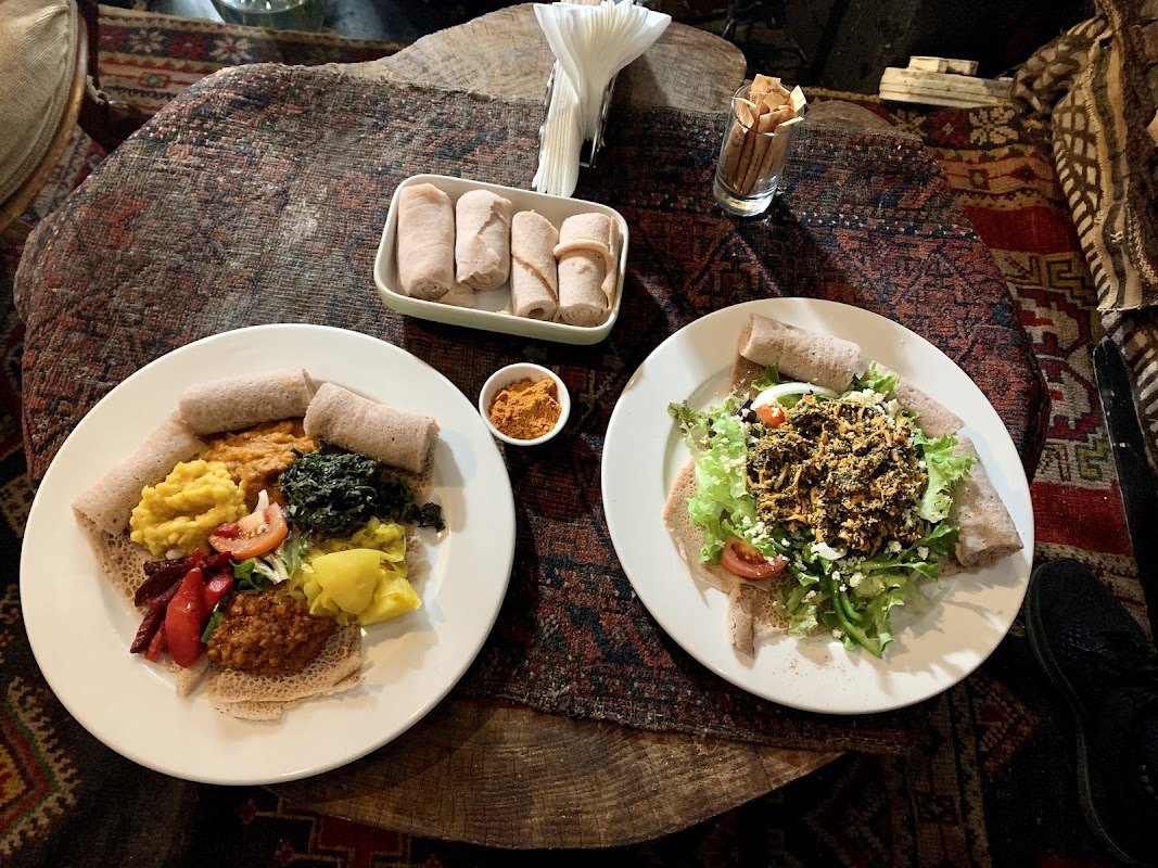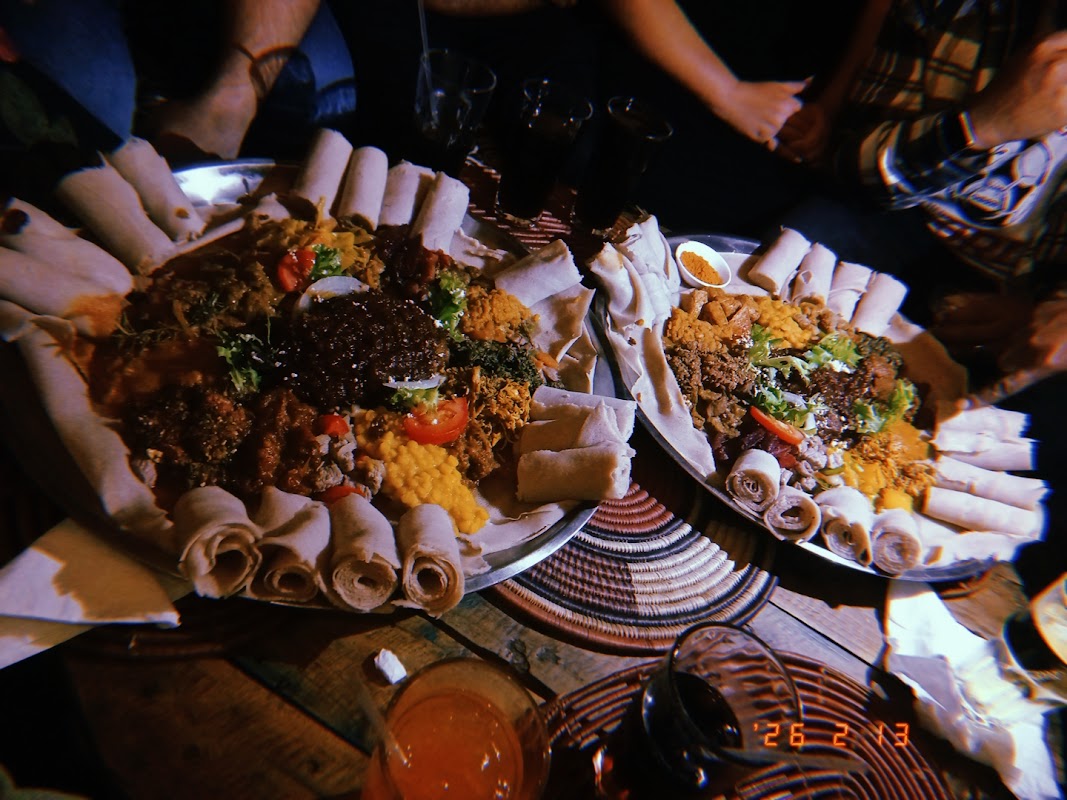 Madam Taitou is one of Cape Town's few dedicated Ethiopian restaurants, sitting on the always-busy Long Street. The menu centres on injera, a spongy sourdough flatbread that doubles as your utensil. Tear and scoop your way through slow-cooked wats, lentil stews, and spiced lamb tibs. The berbere and mitmita spice blends give every dish real depth and heat. The room feels intimate, with low lighting and traditional woven details. Staff guide first-timers through the menu without making it feel like a lecture. Dishes arrive together on a shared platter, which makes this a strong choice for groups. Solo diners fit in just as easily at the bar. With a 4.7 rating across over a thousand reviews, this place earns its reputation consistently. Book ahead on weekends.